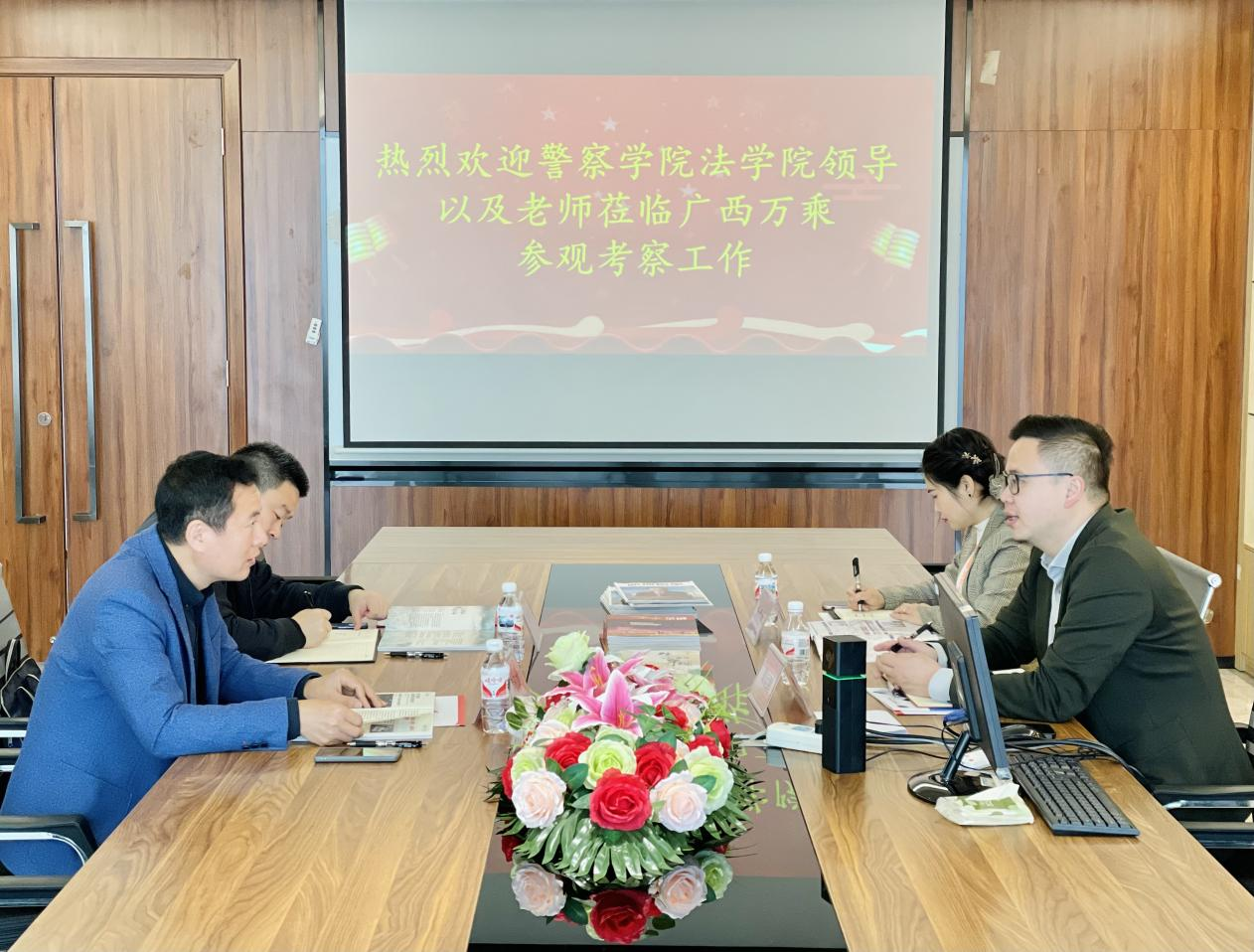 2024年3月14日上午,法学院党总支副书记侯凡雄带队走访万乘金融服务集团广西分公司,挖掘优质就业资源,开拓更多优质就业岗位和校企合作机会。万乘金融服务集团广西分公司董事长谭运鹏,人事部经理杨爱舅出席活动。