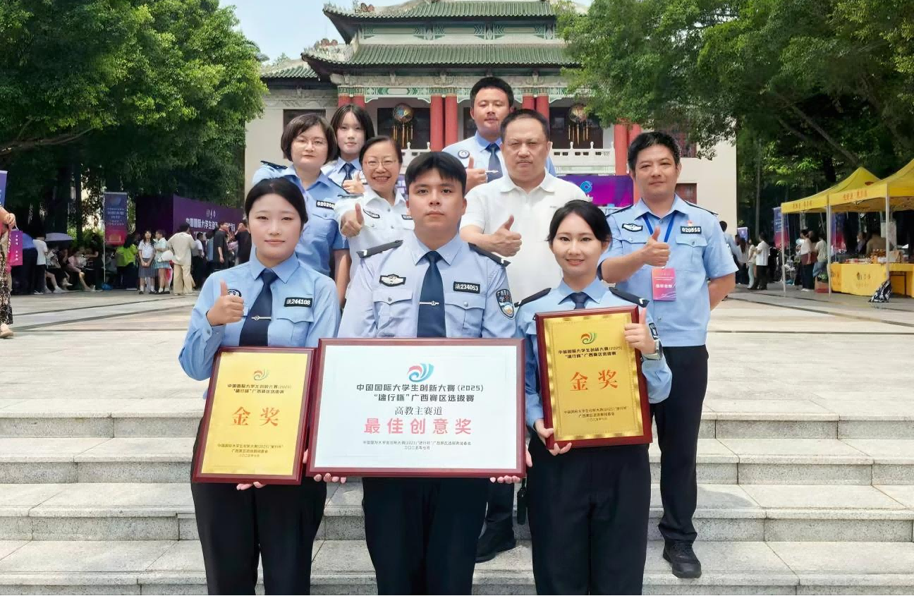 2025年7月18日,2025中国国际大学生创新创业大赛“建行杯”广西区赛选拔赛在广西民族大学相思湖校区完美落幕,法学院共派出两支队伍参加比赛。《南疆之瞳——多模态AI融合三维现场重建系统领航者》《蛛网维安——面向犯罪的动态图谱智慧警务系统》两个项目在本次大学生创新创业大赛上分夺获两项金奖,同时《南疆之瞳——多模态AI融合三维现场重建系统领航者》荣获区赛“最佳创意奖”。比赛过程中展现了我院学子敢闯敢想的创新思维与肯干能干的过硬本领。此次法学院比赛成果得到校领导蒋超副校长的肯定。