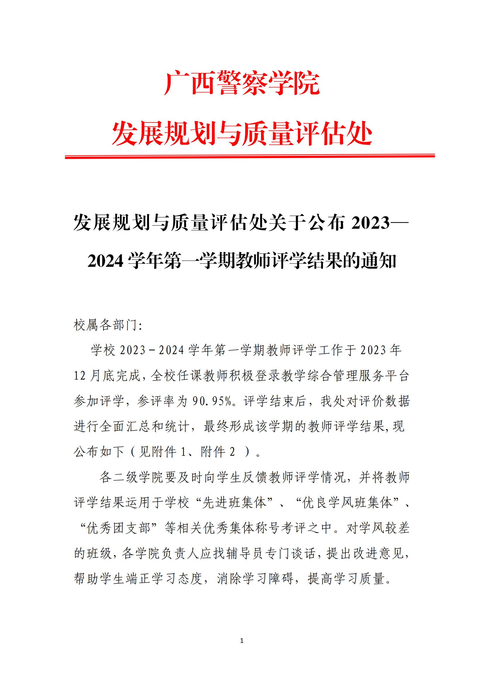 发展规划与质量评估处关于公布2023—2024学年第一学期教师评学结果的通知 来源: 发布时间:2024-01-16 09:31:29 浏览次数: 次 【字体:小 大】 (详情见OA文件) 分享到: 【打印正文】