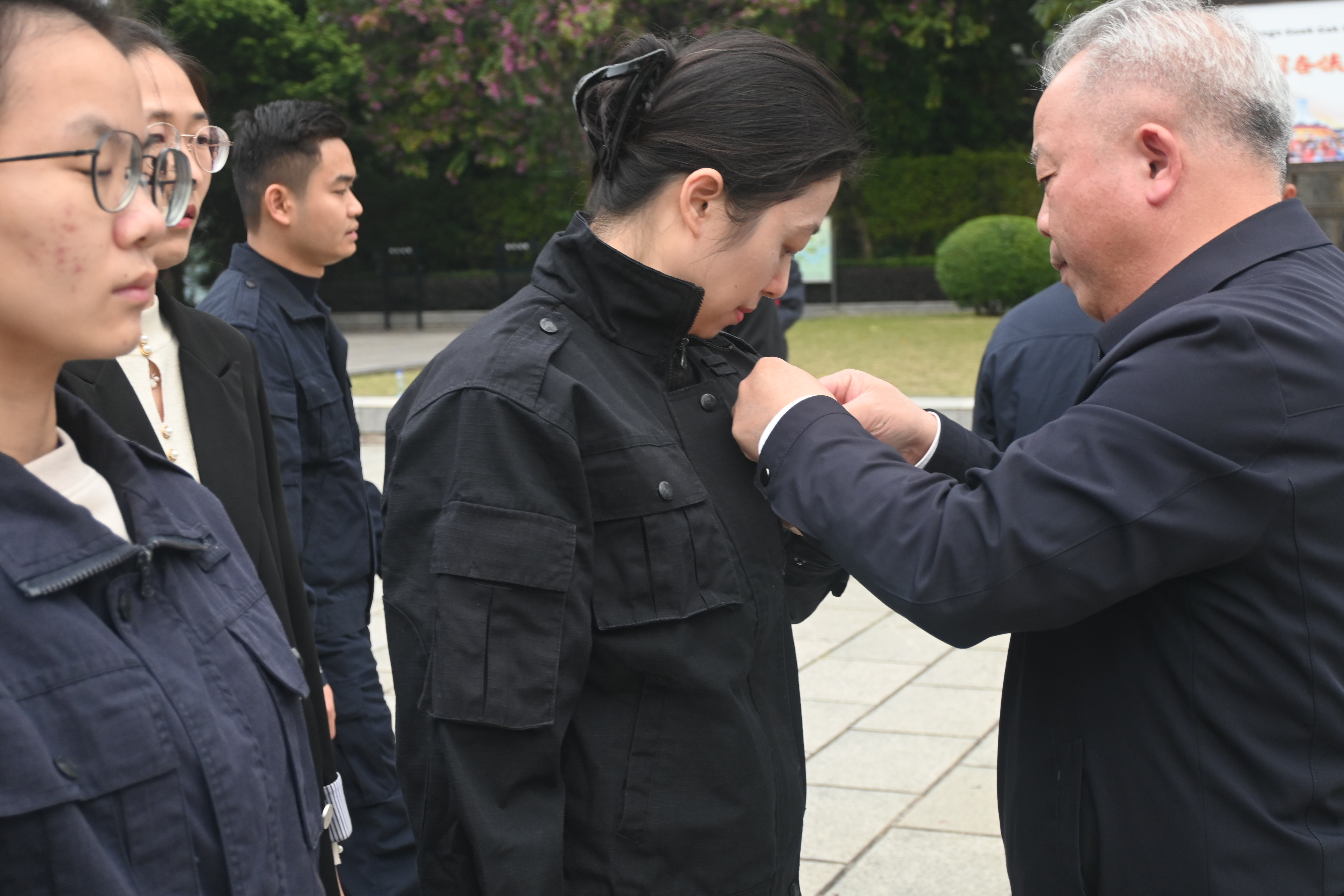 参观结束后,志愿服务环节有序开展。师生党员们分组行动,以饱满的热情投入到公园环境清理工作中,重点对革命烈士纪念碑周边、步道、草坪等区域的白色垃圾、落叶、杂物等进行全面清理。
