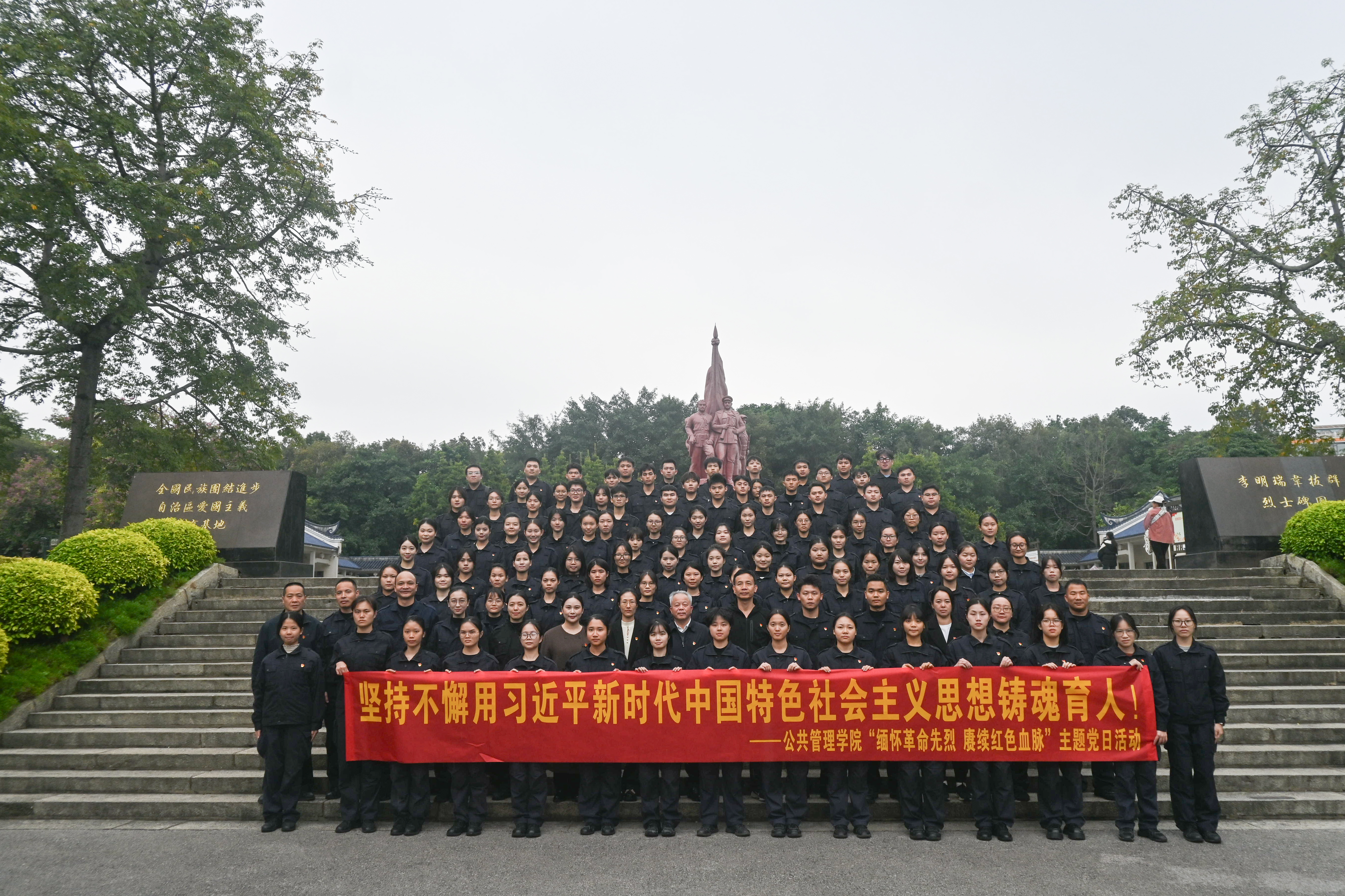 为深入学习贯彻习近平新时代中国特色社会主义思想,强化师生党员党性教育,引导师生党员铭记革命历史、缅怀革命先烈、传承红色基因,12月16日下午,公共管理学院党总支组织师生党员共120余人赴南湖公园李明瑞、韦拔群等革命烈士纪念馆,开展“缅怀革命先烈 赓续红色血脉”主题党日活动。