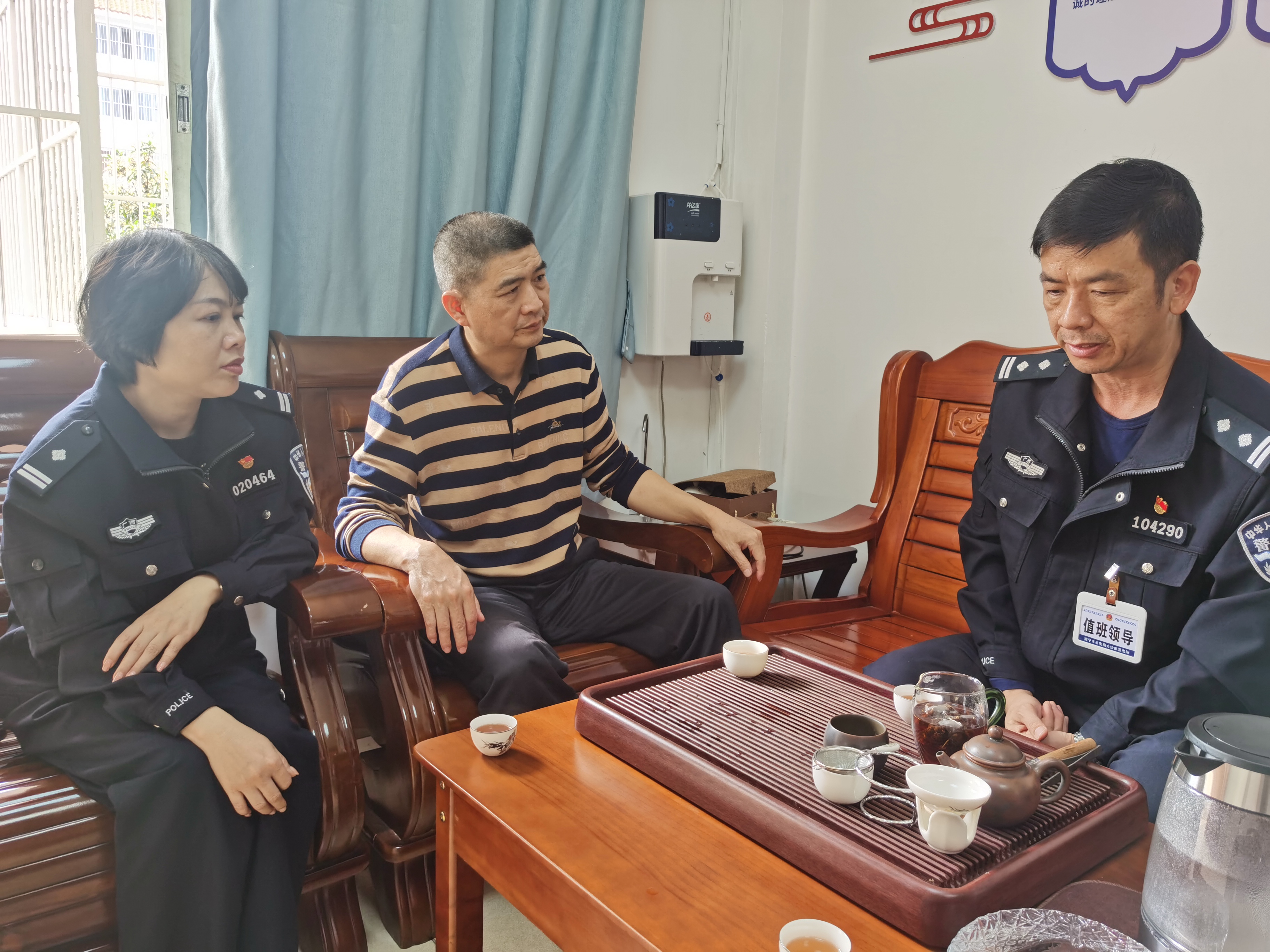 3月中下旬,我部直属党支部书记覃健明在行政办人员陪同下,走访慰问了在基层派出所开展支援工作的教师。