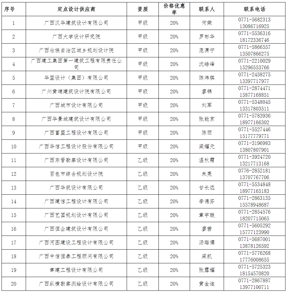本期建设工程设计服务定点供应商名单如下: