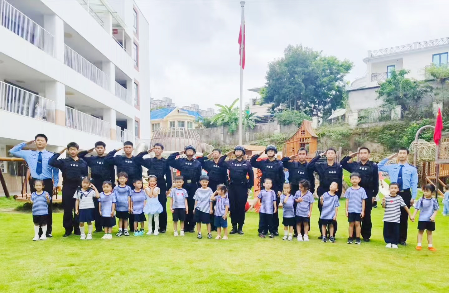 金秋送爽,丹桂飘香。9月30日,在南宁市美吉瑞幼儿园的诚挚邀请下,警务实战学院的学员们英姿飒爽地走进校园,为全体师生带来了一场庄严神圣的升旗仪式和一场精彩绝伦的警务技能战术表演。