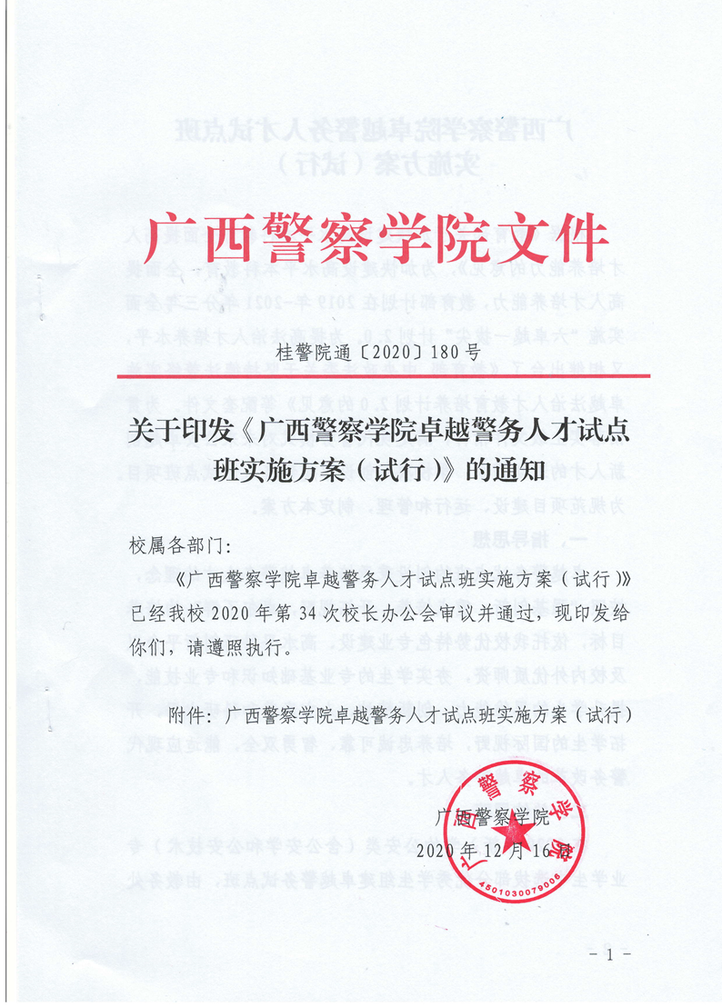 关于印发《beat365亚洲体育官方网站卓越警务人才试点班实施方案(试行)》的通知