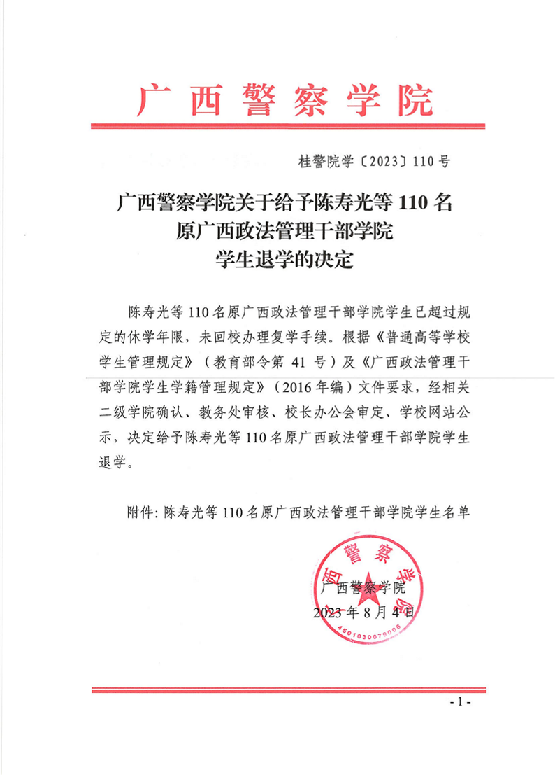 beat365亚洲体育官方网站关于给予陈寿光等 110 名原广西政法管理干部学院学生退学的决定 来源: 发布时间:2023-08-05 09:00:51 浏览次数: 次 【字体:小 大】 分享到: 【打印正文】