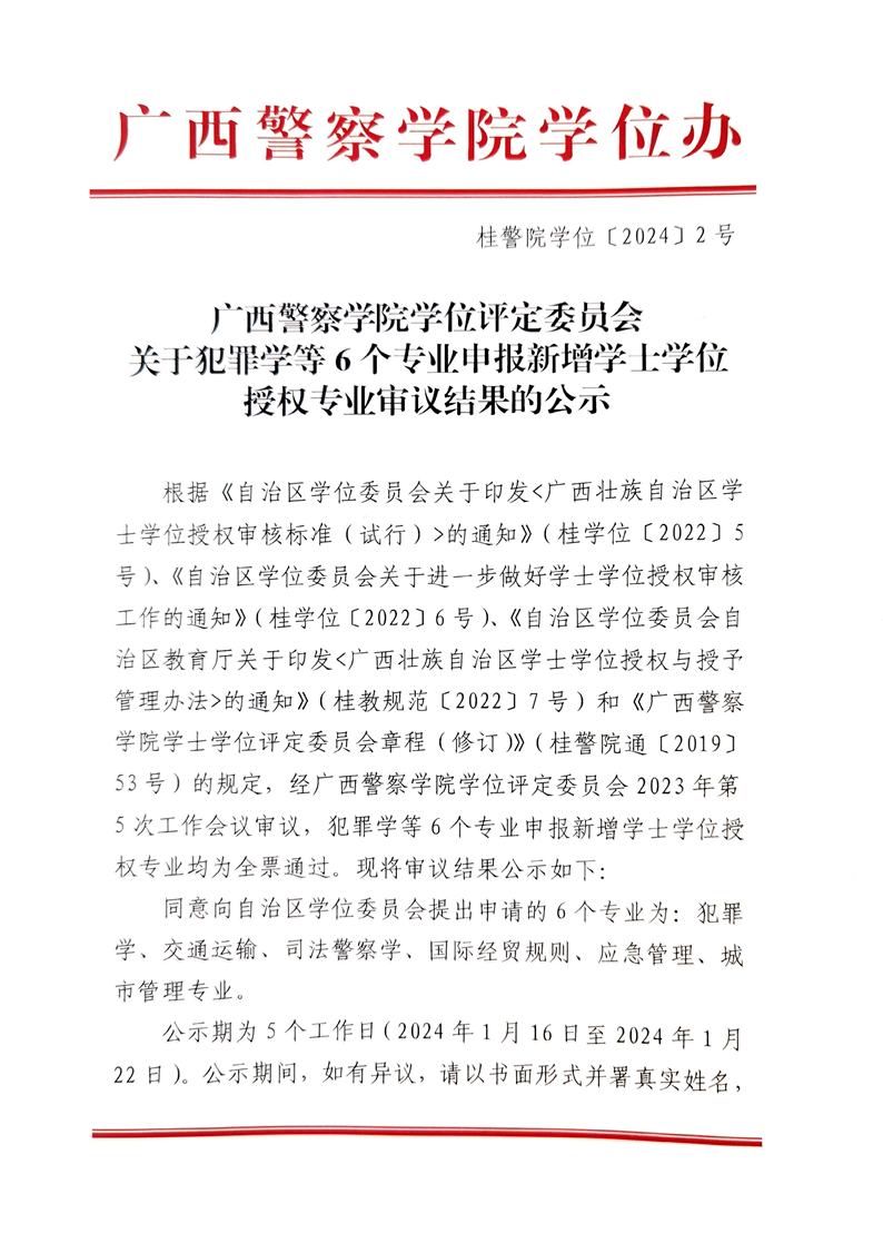 拟新增学位授权学科或专业学位授权点的申报及论证材料 来源: 发布时间:2024-11-15 09:06:15 浏览次数: 次 【字体:小 大】 附件1:犯罪学-申请学士学位授权专业简况表.pdf附件2:交通运输-申请学士学位授权专业简况表.pdf附件3:司法警察学-申请学士学位授权专业简况表.pdf附件4:国际经贸规则-申请学士学位授权专业简况表.pdf附件5:应急管理-申请学士学位授权专业简况表.pdf附件6:城市管理-申请学士学位授权专业简况表.pdf 分享到: 【打印正文】
