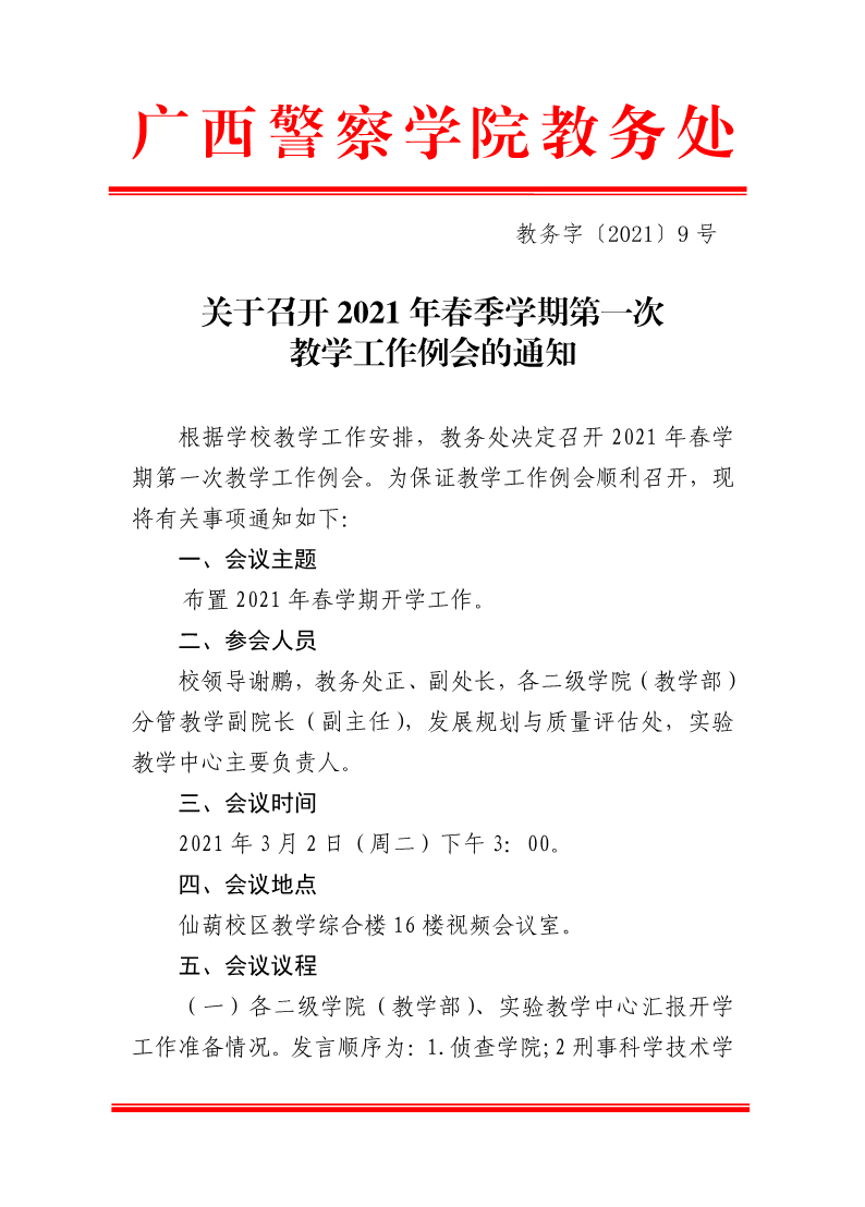 关于召开2021年春季学期第一次教学工作例会的通知