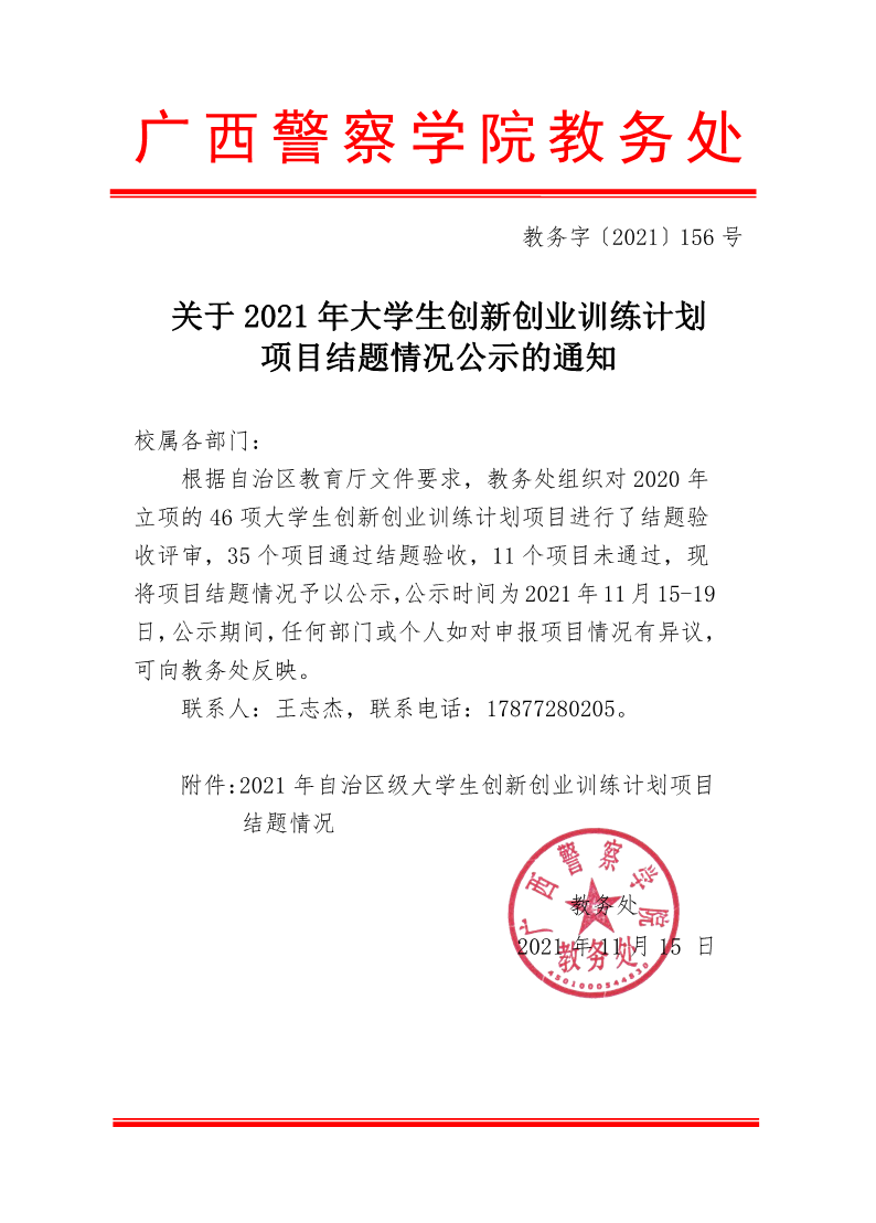 关于2021年大学生创新创业训练计划项目结题情况公示的通知