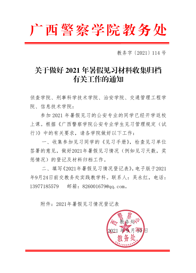 关于做好2021年暑假见习材料收集归档有关工作的通知