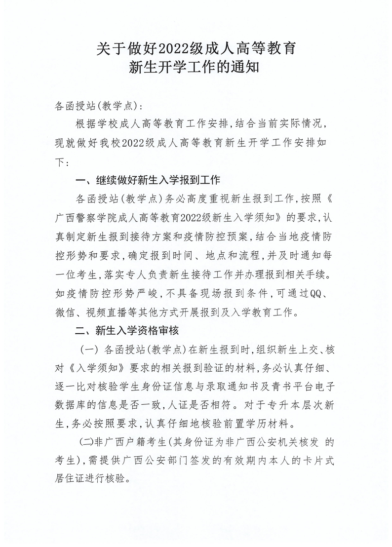 关于做好2022级成人高等教育新生开学工作的通知 来源: 发布时间:2022-02-24 09:18:58 浏览次数: 次 【字体:小 大】 202202240920550710.docx202202240920557364.docx202202240920559233.docx202202240920565473.docx 分享到: 【打印正文】