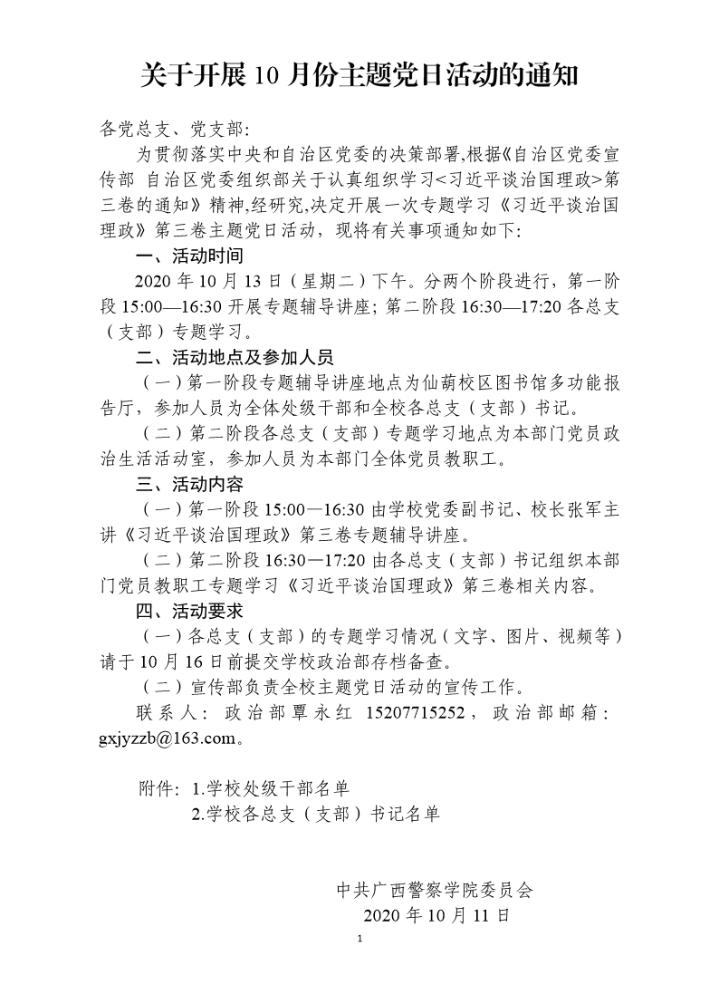 转发学校关于开展10月份主题党日活动的通知