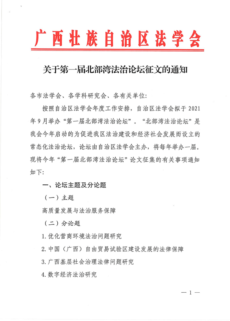 关于第一届北部湾法治论坛征文的通知 来源: 发布时间:2021-04-30 16:03:58 浏览次数: 次 【字体:小 大】 智能标签: 第一届 北部湾 法治 论坛 征文 分享到: 【打印正文】 相关内容