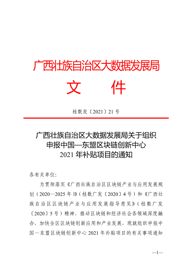 广西壮族自治区大数据发展局关于组织申报中国—东盟区块链创新中心2021年补贴项目的通知 来源: 发布时间:2021-09-23 15:39:54 浏览次数: 次 【字体:小 大】 智能标签: 大数据 发展局 组织 项目 分享到: 【打印正文】 相关内容