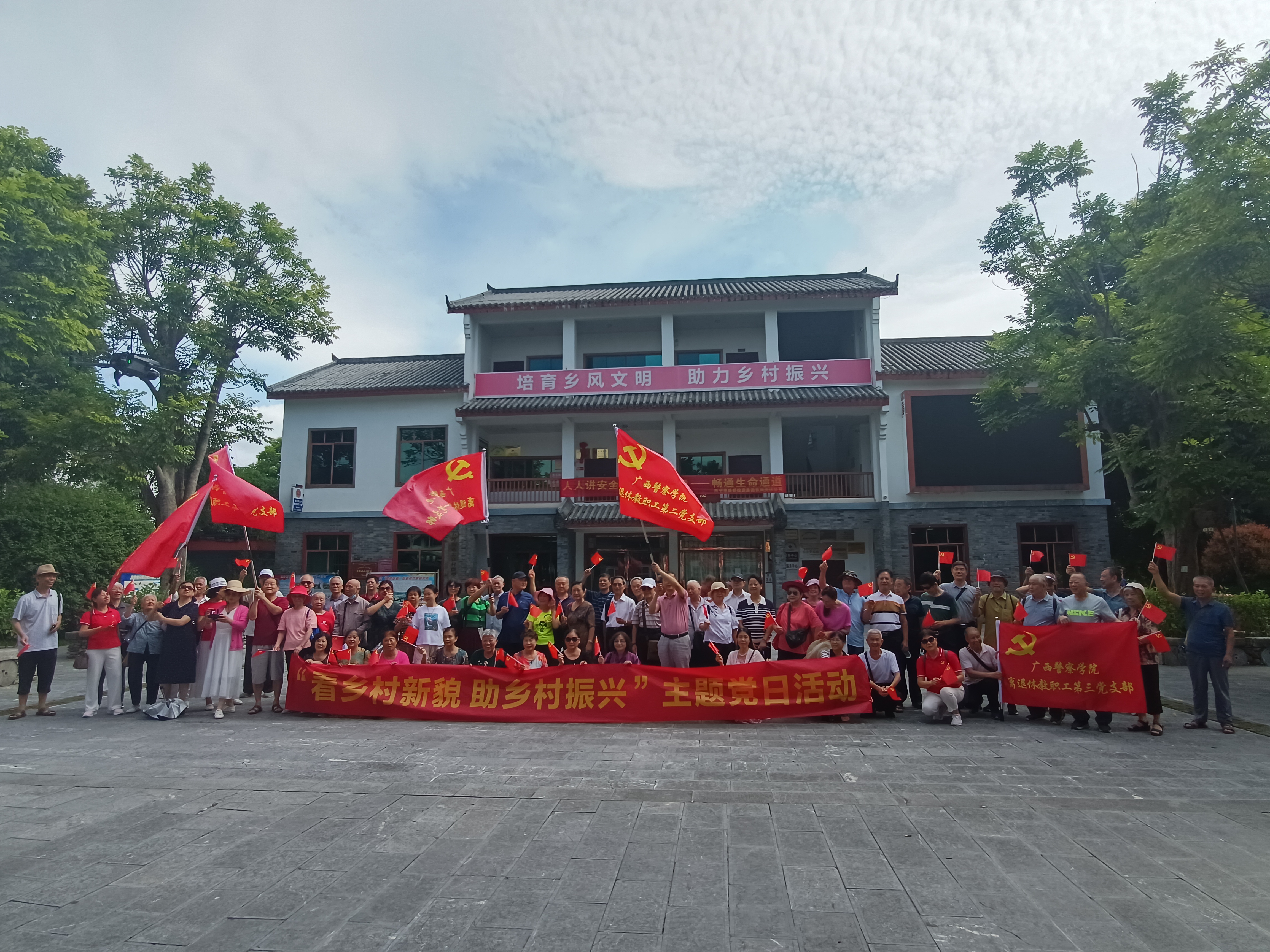 为深入学习贯彻习近平新时代中国特色社会主义思想,加强离退休教职工党的建设,提升基层党组织组织力、凝聚力,6月20日上午,离退休教职工5个党支部到南宁市西乡塘区忠良村开展“看乡村新貌 助乡村振兴”主题党日活动。