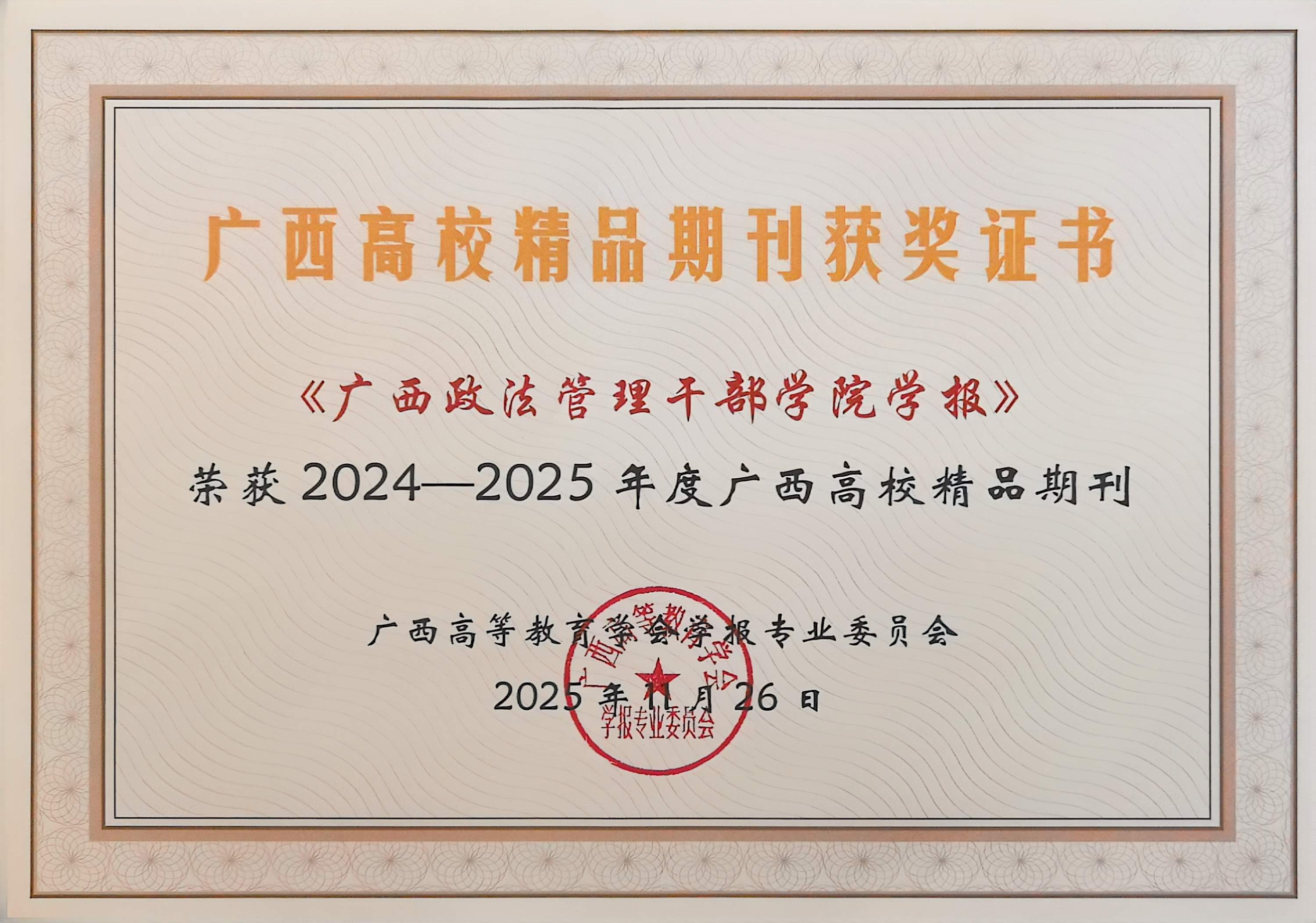 在本次评优活动中,编辑部喜获多项奖励。《beat365亚洲体育官方网站学报》获评2024—2025年度广西高校名刊,《广西政法管理干部学院学报》获评2024—2025年度广西高校精品期刊。陈华、唐德才获评2025年度广西高校学报优秀主编,王真真、刘少霞、唐颖菲、袁翠微获评2025年度广西高校学报优秀编辑。