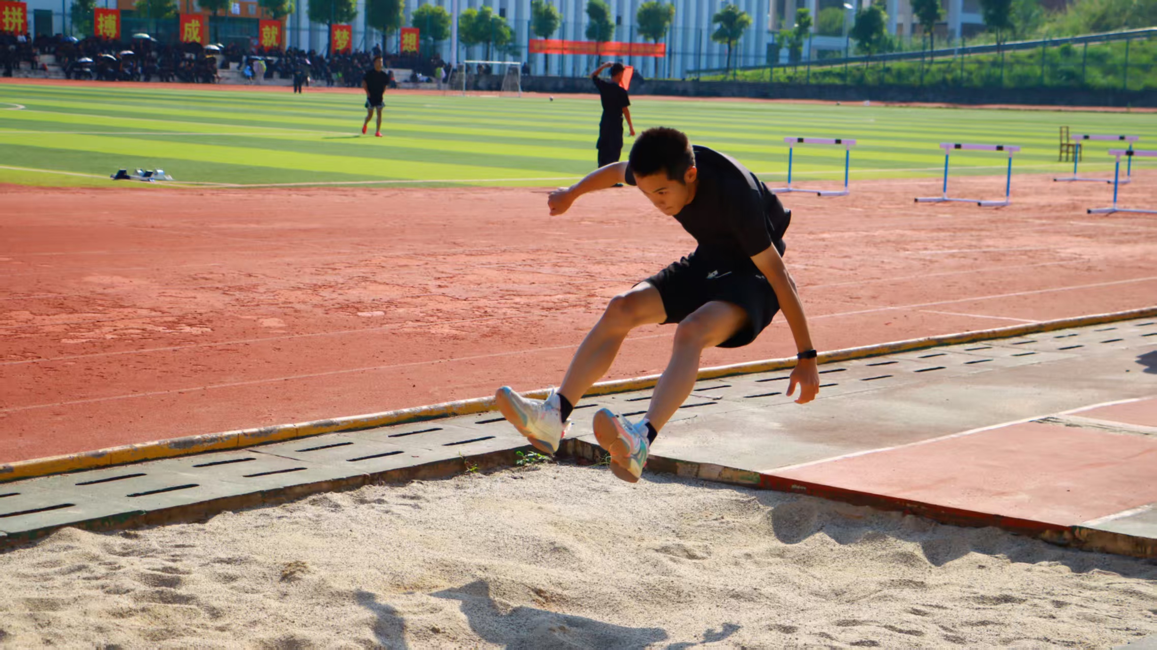 赛场上,运动员们火力全开、奋勇争先。短跑的疾如闪电、长跑的耐力角逐、跳远的腾空一跃、跳高的向上突破、铅球的奋力投掷,每一项比拼都彰显着他们挑战自我、超越极限的执着。