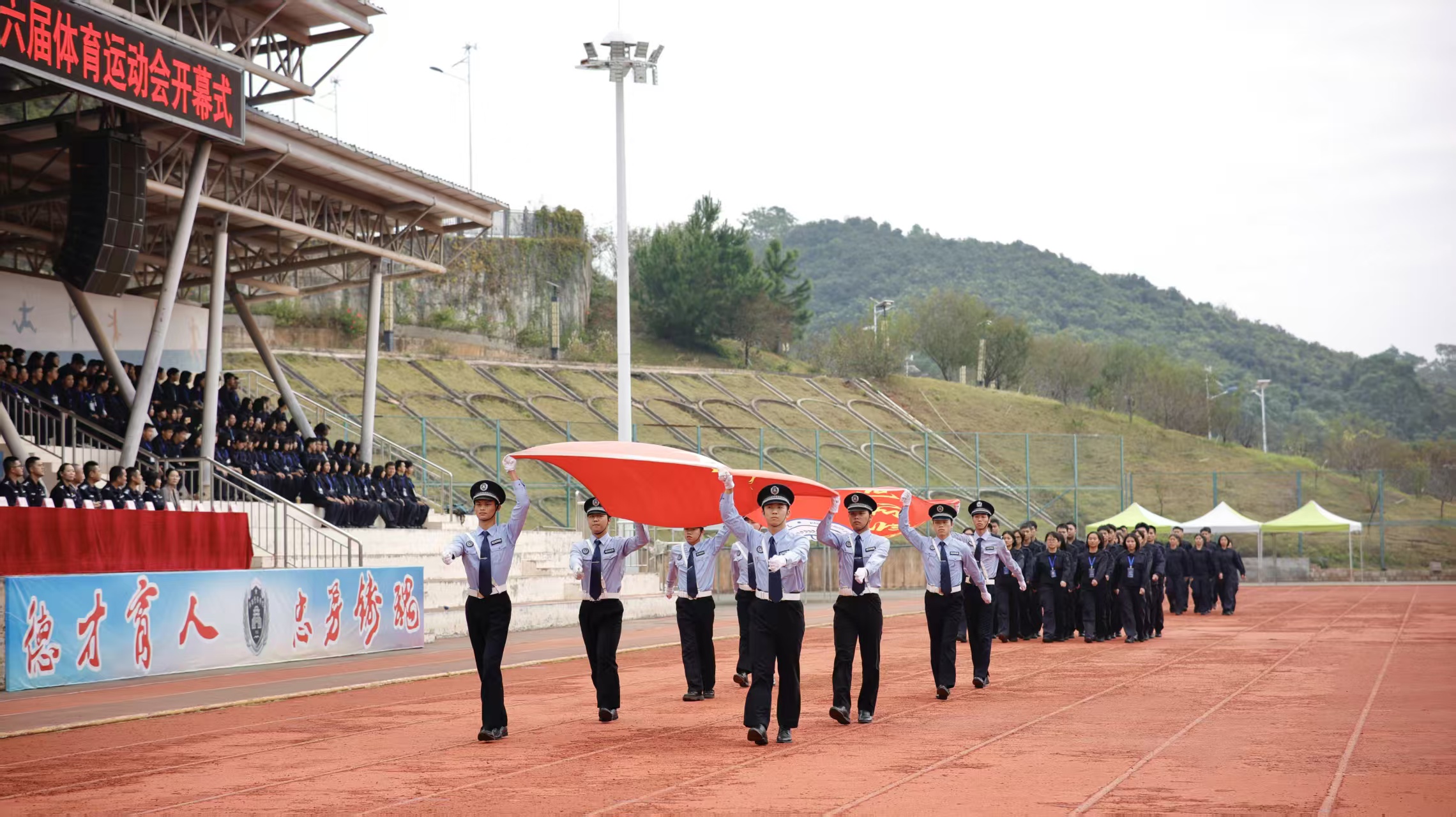 2025年10月25日上午8时,beat365亚洲体育官方网站司法应用学院在五合校区田径场举办第六届田径运动会,学院党总支书记王洪、党总支副书记兰岚、全体辅导员及全体在校生参加开幕式并全程参加运动会。