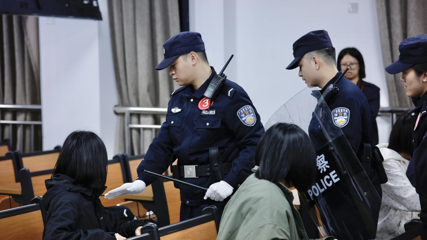 随后进行的司法警察学专业组比赛中,“安全检查”项目模拟庭审前安检全流程,选手规范操作X光机与人工查验设备;“庭审警务保障”项目还原押解、值庭等场景,重点考核警械使用规范性与团队协作水平。