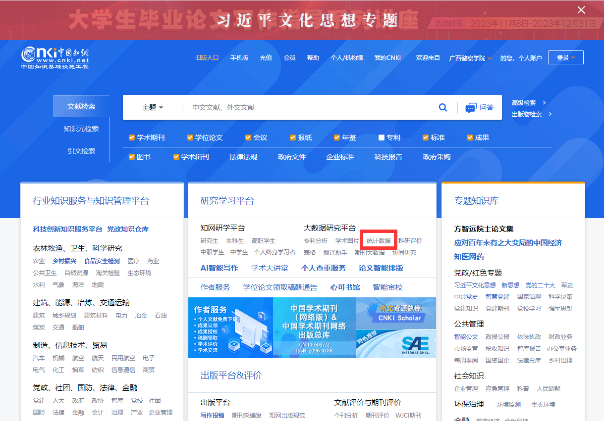 CNKI学术辑刊、年鉴、经济社会大数据研究平台等模块使用说明