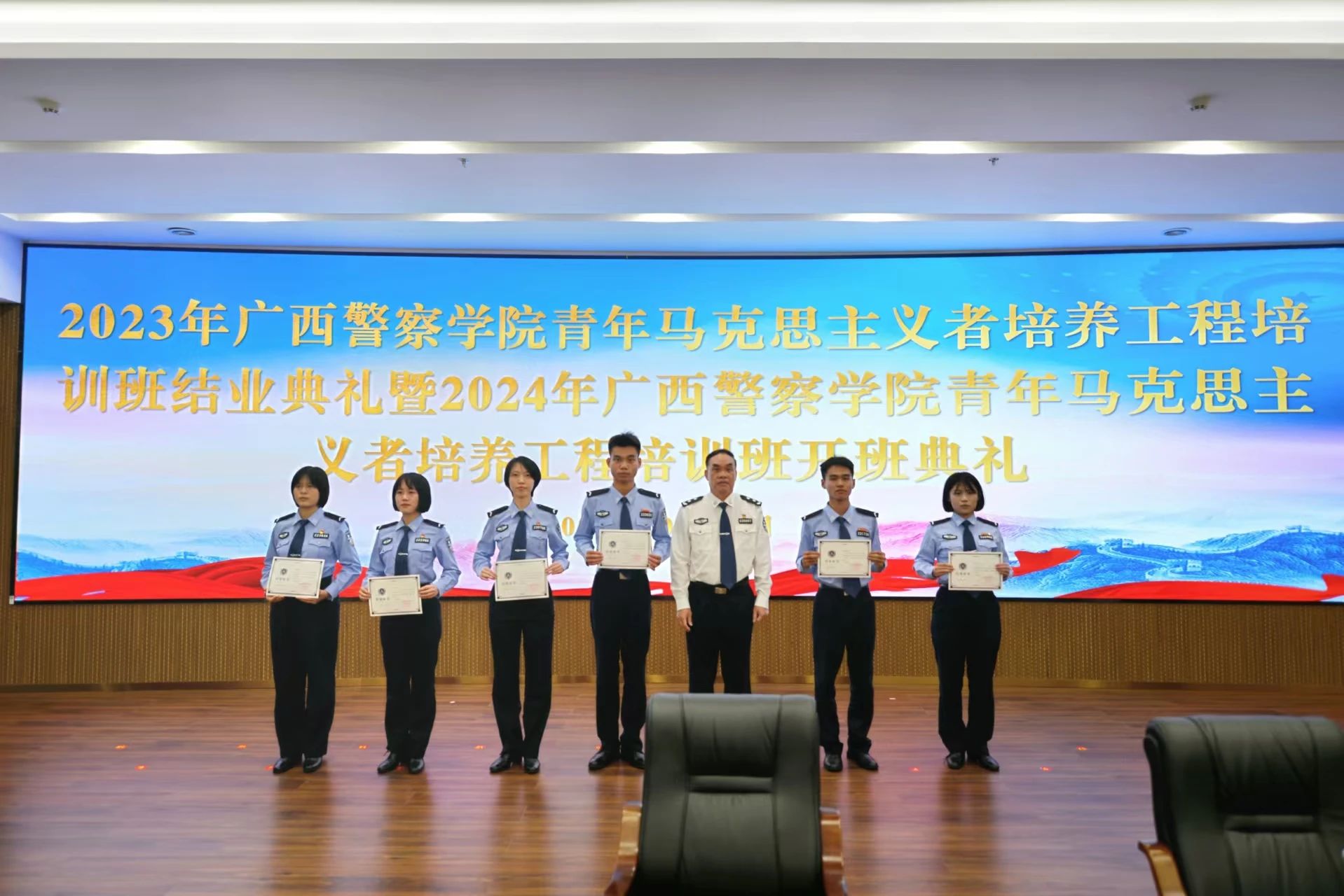 学校副校长李克为2023年青马班结业学员代表颁发结业证书
