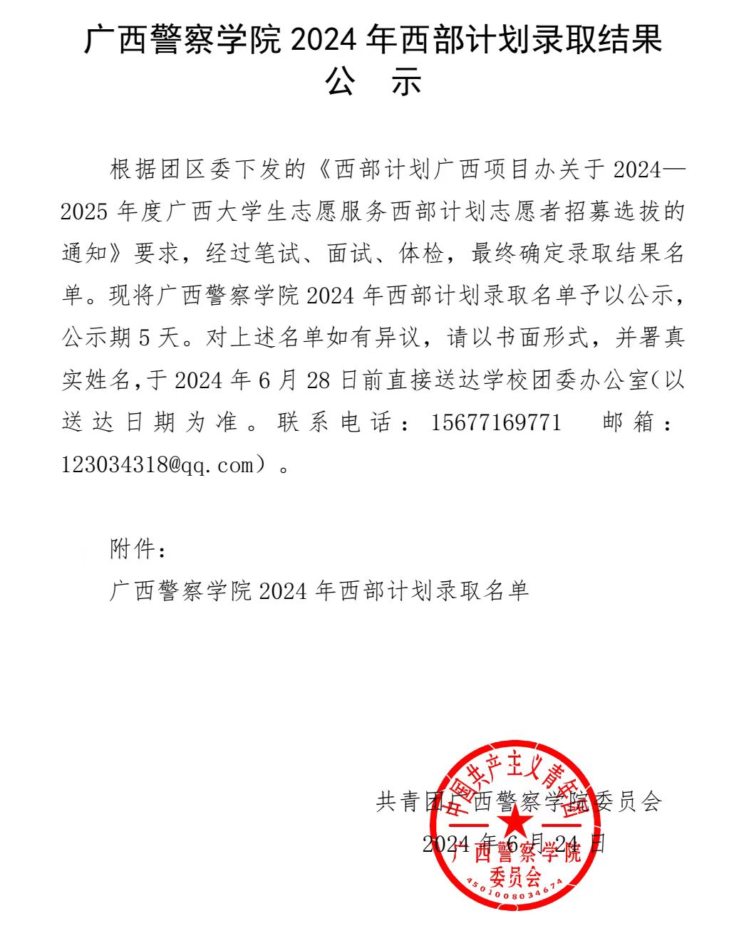 beat365亚洲体育官方网站2024年西部计划录取结果公示