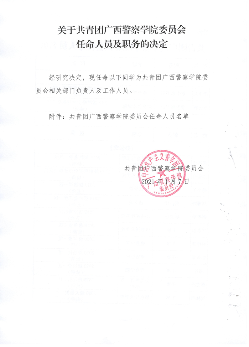 关于共青团beat365亚洲体育官方网站委员会任命人员及职务的决定