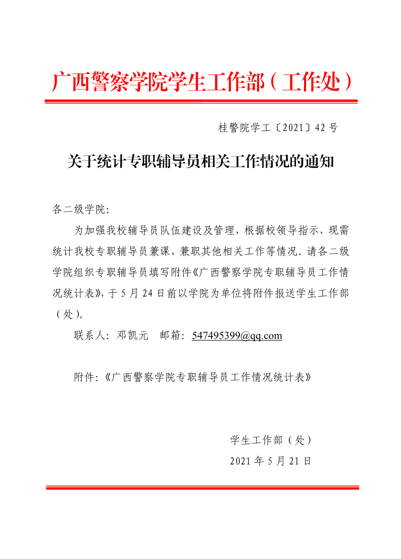 关于统计专职辅导员相关工作情况的通知 来源: 发布时间:2021-05-21 15:10:07 浏览次数: 次 【字体:小 大】 附件:beat365亚洲体育官方网站专职辅导员工作情况统计表.pdf 分享到: 【打印正文】