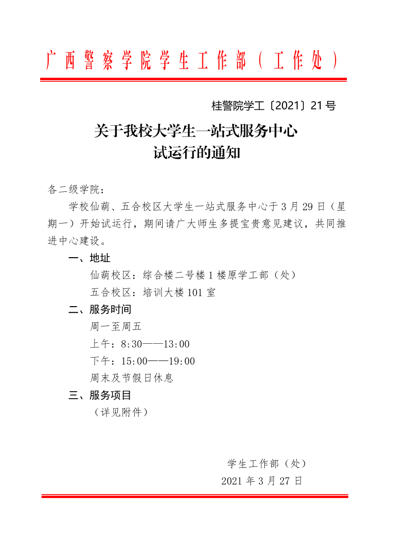 关于beat365大学生一站式服务中心试运行的通知 来源: 发布时间:2021-03-27 15:35:28 浏览次数: 次 【字体:小 大】 附件:大学生一站式服务中心服务项目.pdf 分享到: 【打印正文】