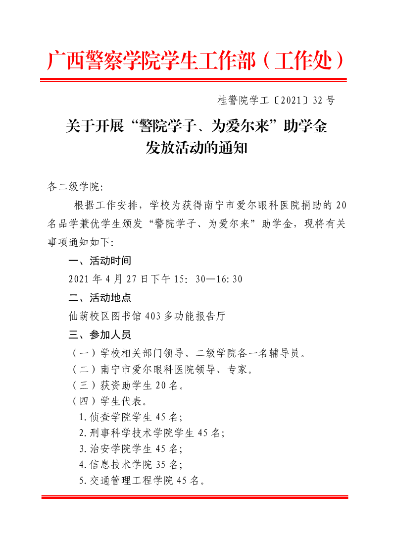 关于开展“警院学子、为爱尔来”助学金发放活动的通知