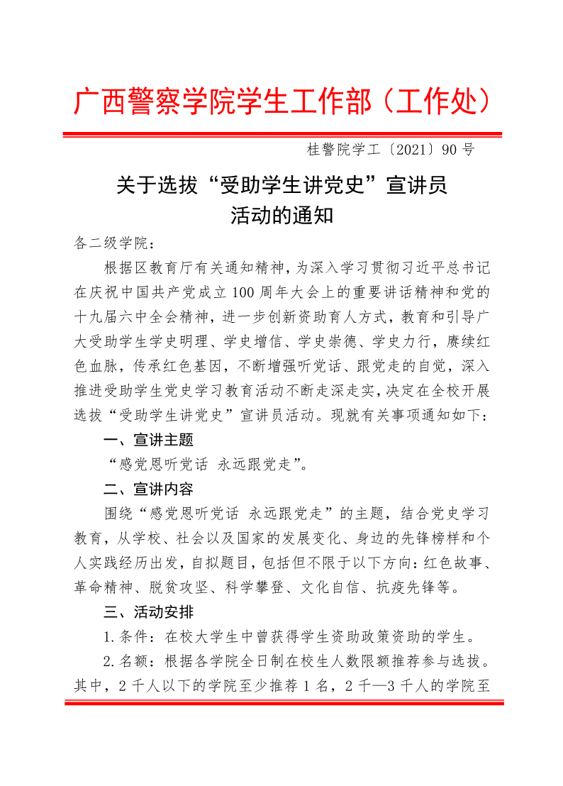 关于选拔“受助学生讲党史”宣讲员活动的通知