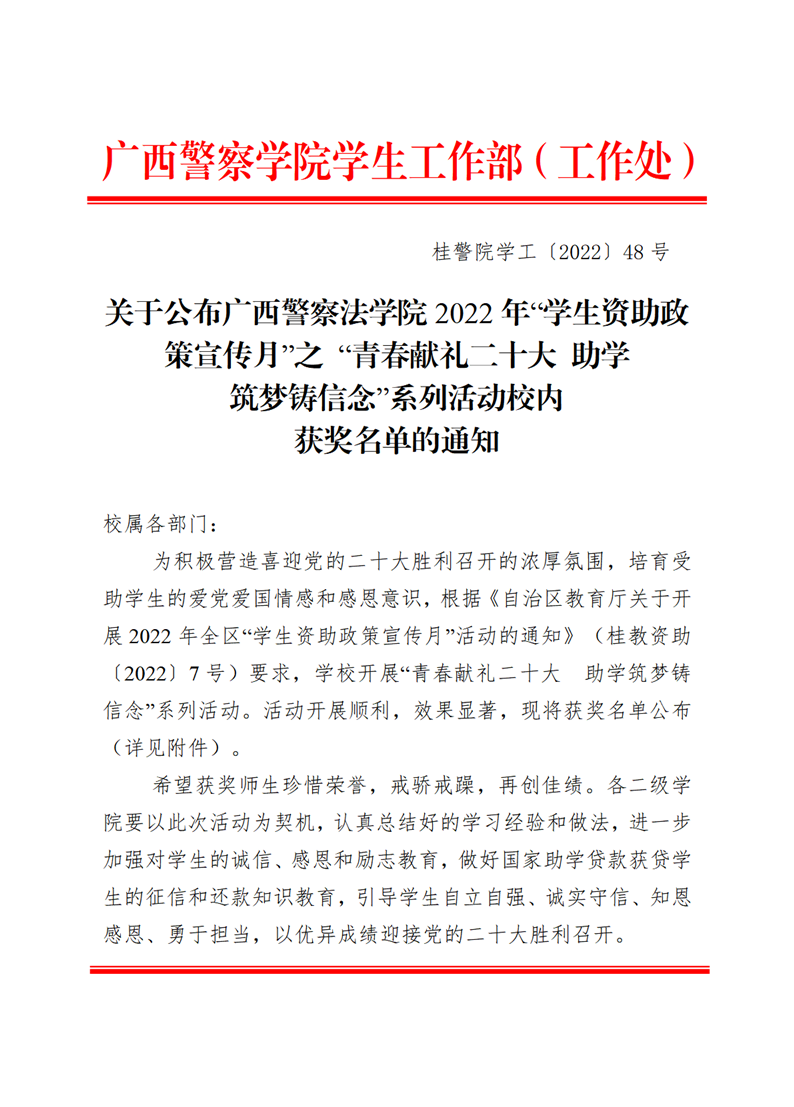 关于公布2022年“学生资助政策宣传月”之 “青春献礼二十大 助学筑梦铸信念”系列活动校内获奖名单的通知 来源: 发布时间:2022-05-23 11:00:51 浏览次数: 次 【字体:小 大】 分享到: 【打印正文】