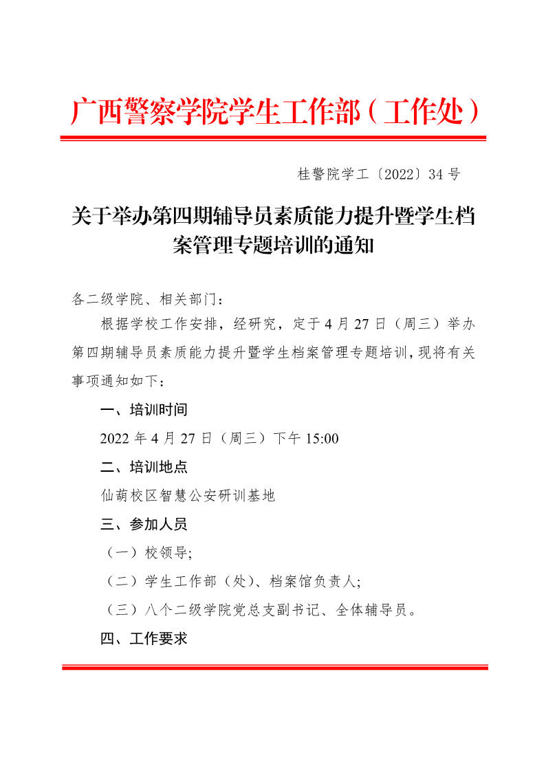关于举办第四期辅导员素质能力提升暨学生档案管理专题培训的通知