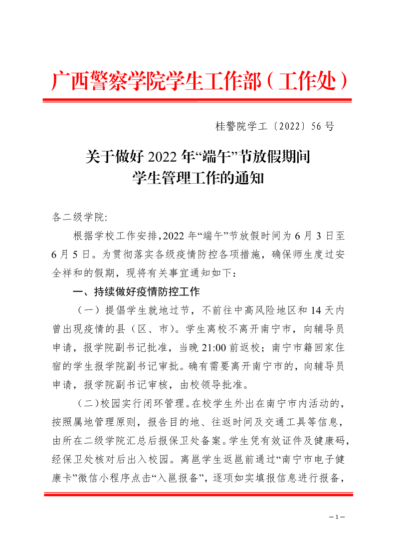 关于做好2022年“端午”节放假期间学生管理工作的通知