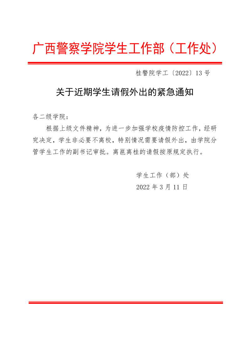 关于近期学生请假外出的紧急通知