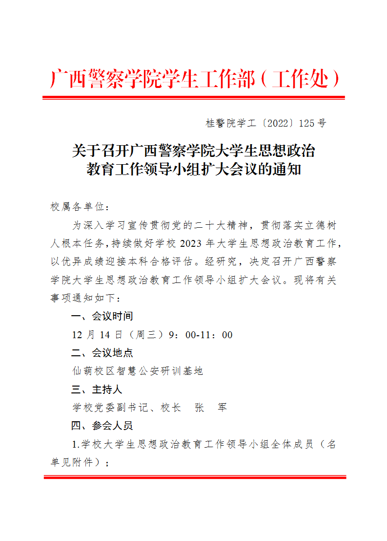 关于召开beat365亚洲体育官方网站大学生思想政治教育工作领导小组扩大会议的通知