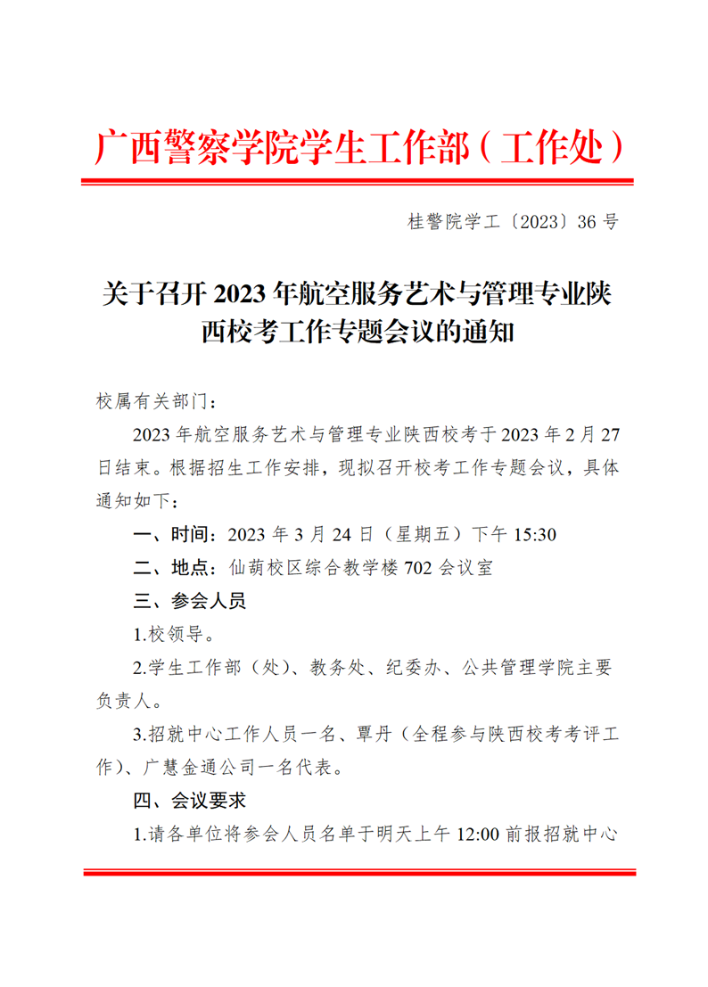 关于召开2023年航空服务艺术与管理专业陕西校考工作专题会议的通知