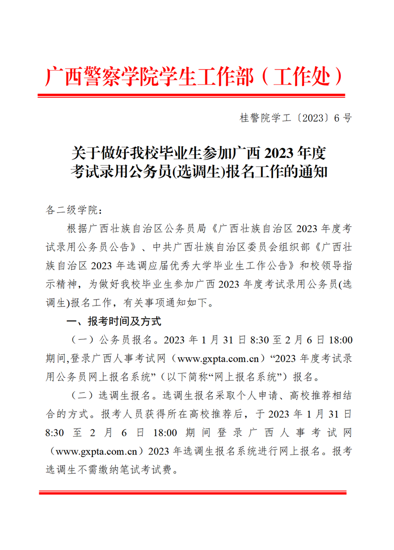 关于做好beat365毕业生参加广西2023年度考试录用公务员(选调生)报名工作的通知 来源: 发布时间:2023-01-30 09:00:26 浏览次数: 次 【字体:小 大】 分享到: 【打印正文】
