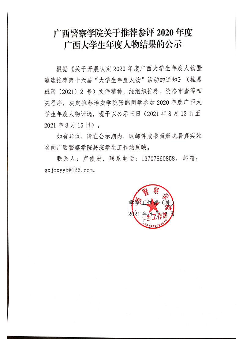 beat365亚洲体育官方网站关于推荐参评2020年度广西大学生年度人物结果的公示