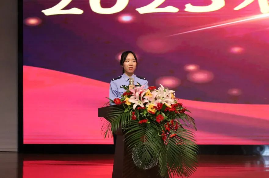 毕业生代表梁释文、朱薪羽上台发言,她们回忆过往,在四年的校园时光中,在求学之路、在重大活动安保前线践行“请党放心、强国有我”的铮铮誓言,与学校同舟共济,潜心求学、挺膺担当,用实际行动激扬热血青春。毕业生们将始终坚守初心和理想,坚守正义和良知。