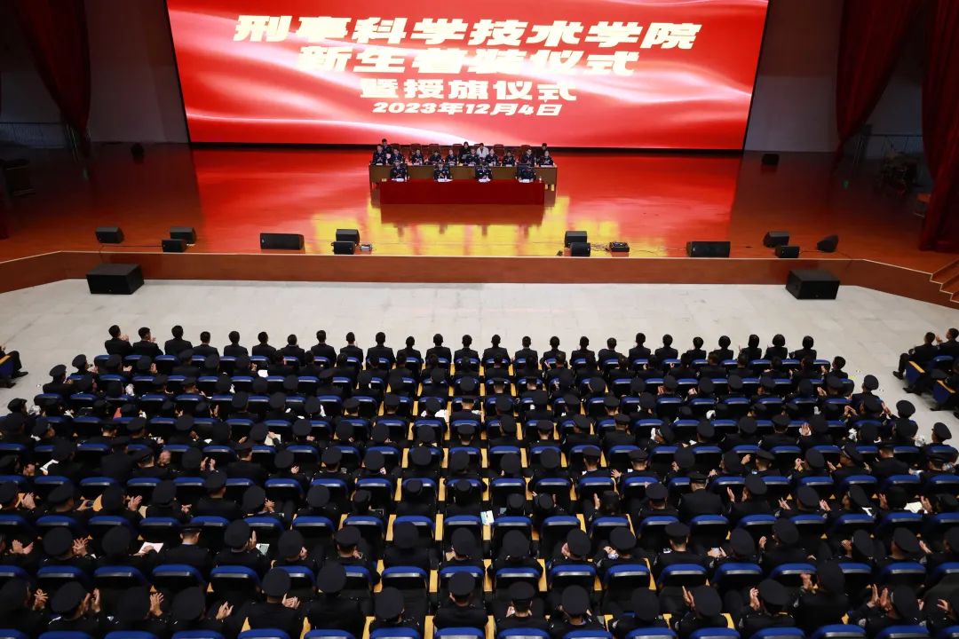 为进一步加强公安院校正规化建设,规范学生着装管理,树立我院学生良好形象,2023年12月4日下午,刑事科学技术学院于仙葫校区学术报告厅举行2023级新生着装仪式暨授旗仪式。仪式由学院党总支副书记黄建跃主持,党总支书记杨坚、院长侯碧海、副院长李小华以及学院全体师生参加。