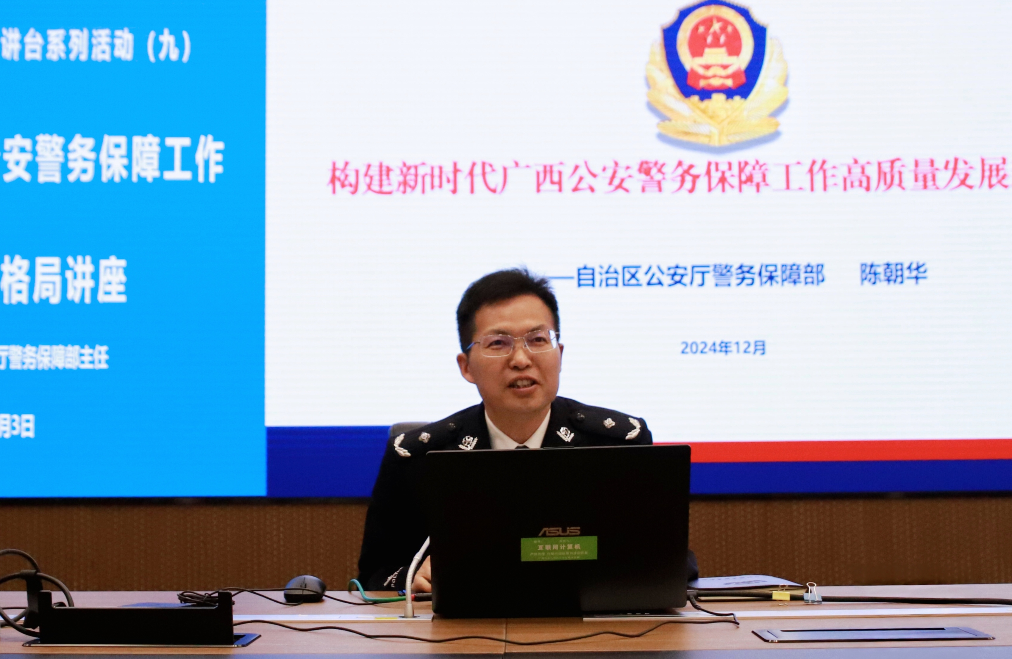 自治区公安厅警务保障部主任陈朝华到beat365开展警务保障工作专题讲座 来源: 发布时间:2024-12-04 20:25:46 浏览次数: 次 【字体:小 大】 12月3日,自治区公安厅机关领导干部上讲台系列活动在beat365仙葫校区智慧公安研训基地举行,自治区公安厅警务保障部主任陈朝华受邀为师生作题为《构建新时代广西公安警务保障工作高质量发展格局》的主题讲座。陈朝华从技术、法制、政治、信息化等方面介绍了广西警务保障工作的现状、未来、存在问题和发展路径,阐明了加强警务保障工作是公安工作顺利展开的重要保证,帮助师生加深对警务保障工作的认识。讲座以丰富的内容和详实的案例充分调动同学们的学习热情,现场反响热烈。治安学院师生代表200余人参加讲座。 分享到: 【打印正文】
