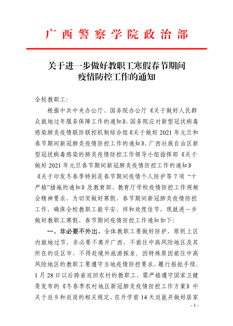 关于进一步做好教职工寒假春节期间疫情防控工作的通知