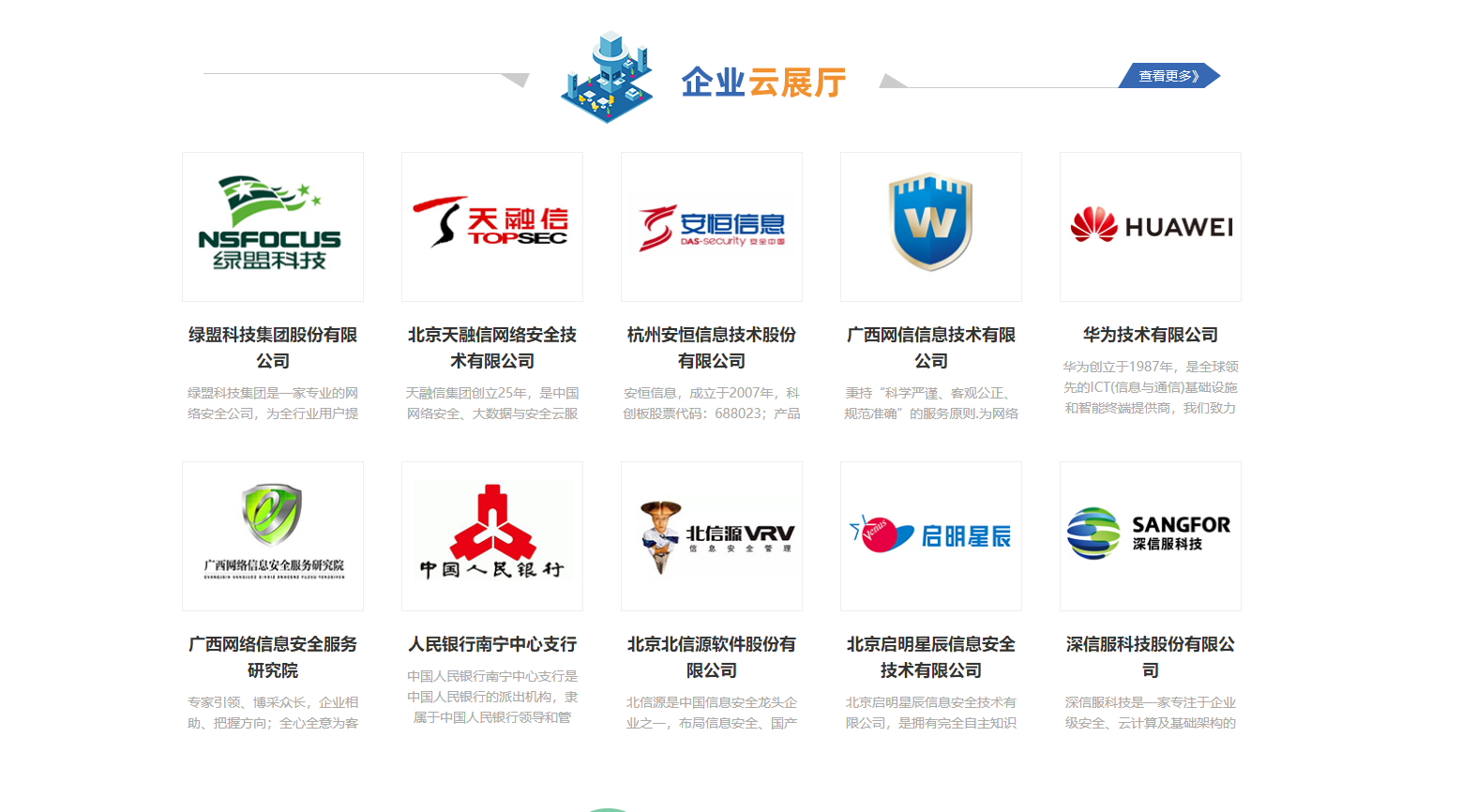 2020年国家网络安全宣传周广西活动将于9月14日在桂林市举办启动仪式。9月11日,本次活动线上平台(http://news.guilinlife.com/special/wlaq2020/)正式上线。线上平台设企业云展厅、安全云课程、专家答疑等多个板块,通过图文、短视频、线上答疑、线上企业展示等多种形式,全面呈现活动最新进展和广西网络安全方面的亮点成就。