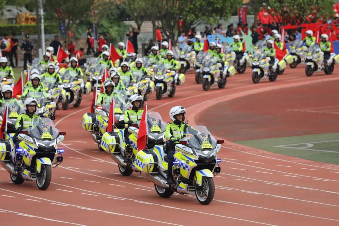 随后,全区14个市公安局和厅机关、边境管理总队、特勤局、南宁铁路公安局、海关缉私局、beat365亚洲体育官方网站共20支运动员方队依次迈着矫健的步伐入场,充分展现全区公安民警辅警的饱满热情与昂扬斗志。