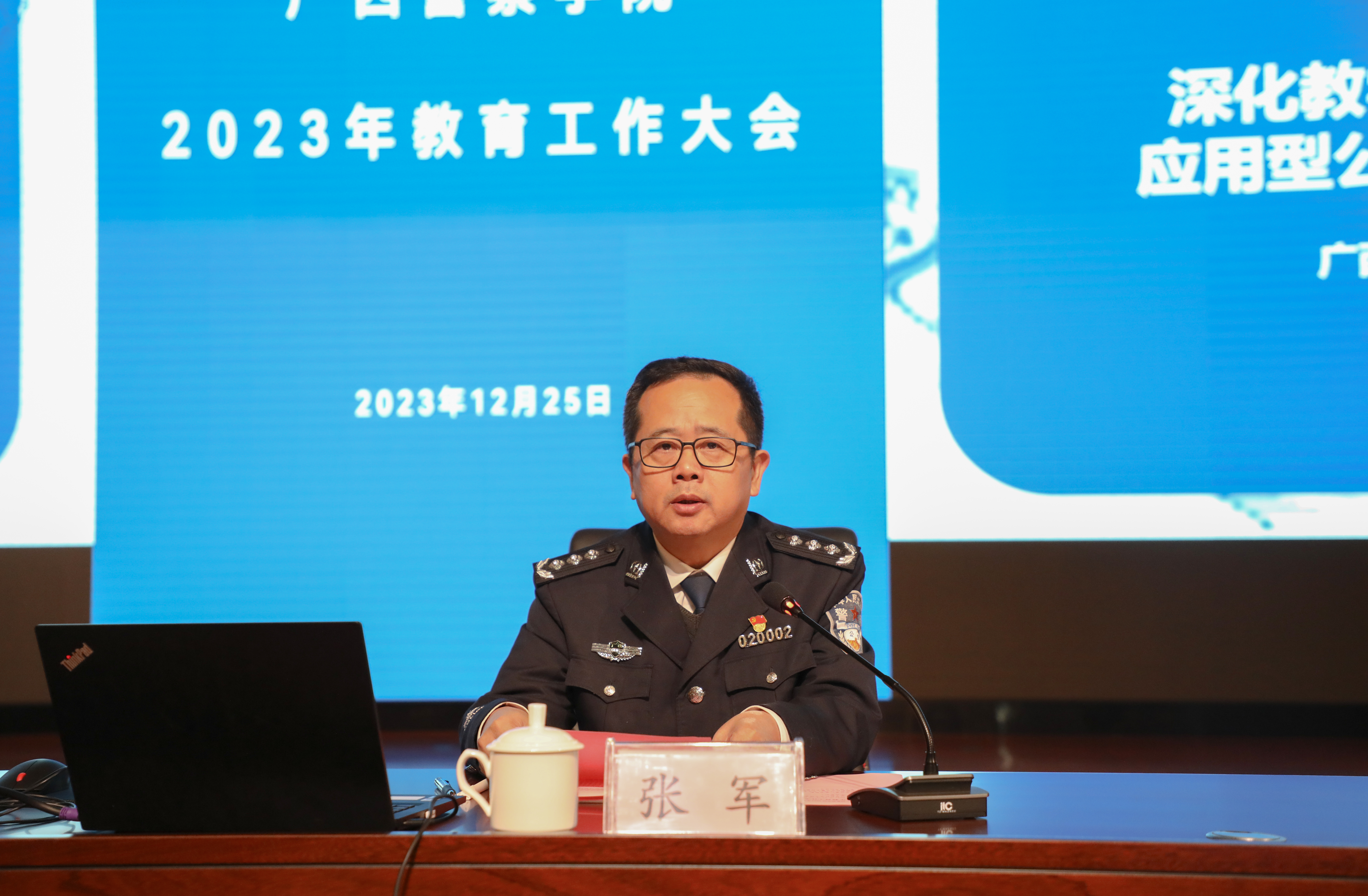 会上,学校党委副书记、校长张军作了《深化教学改革 为实现区域高水平应用型公安本科院校目标而努力奋斗》的主题报告,对2023年学校教育教学工作取得的成绩作了总结。他表示,学校在自治区公安厅、自治区教育厅的领导下,以迎接本科教学工作合格评估为契机,踔厉奋发、勇毅前行,主动对接广西经济社会发展和平安广西、法治广西建设需要,主动服务新时代国家安全战略,忠实履行立德树人根本任务,坚守为党育人、为国育才、为警铸剑的历史使命,积极更新办学理念,全力推动转型升级,紧紧围绕合格评估指标内涵建设,以评促建、以评促改,在办学条件改善、学科专业建设、教学管理水平、人才培养质量、社会服务能力等方面均取得了长足的进步。