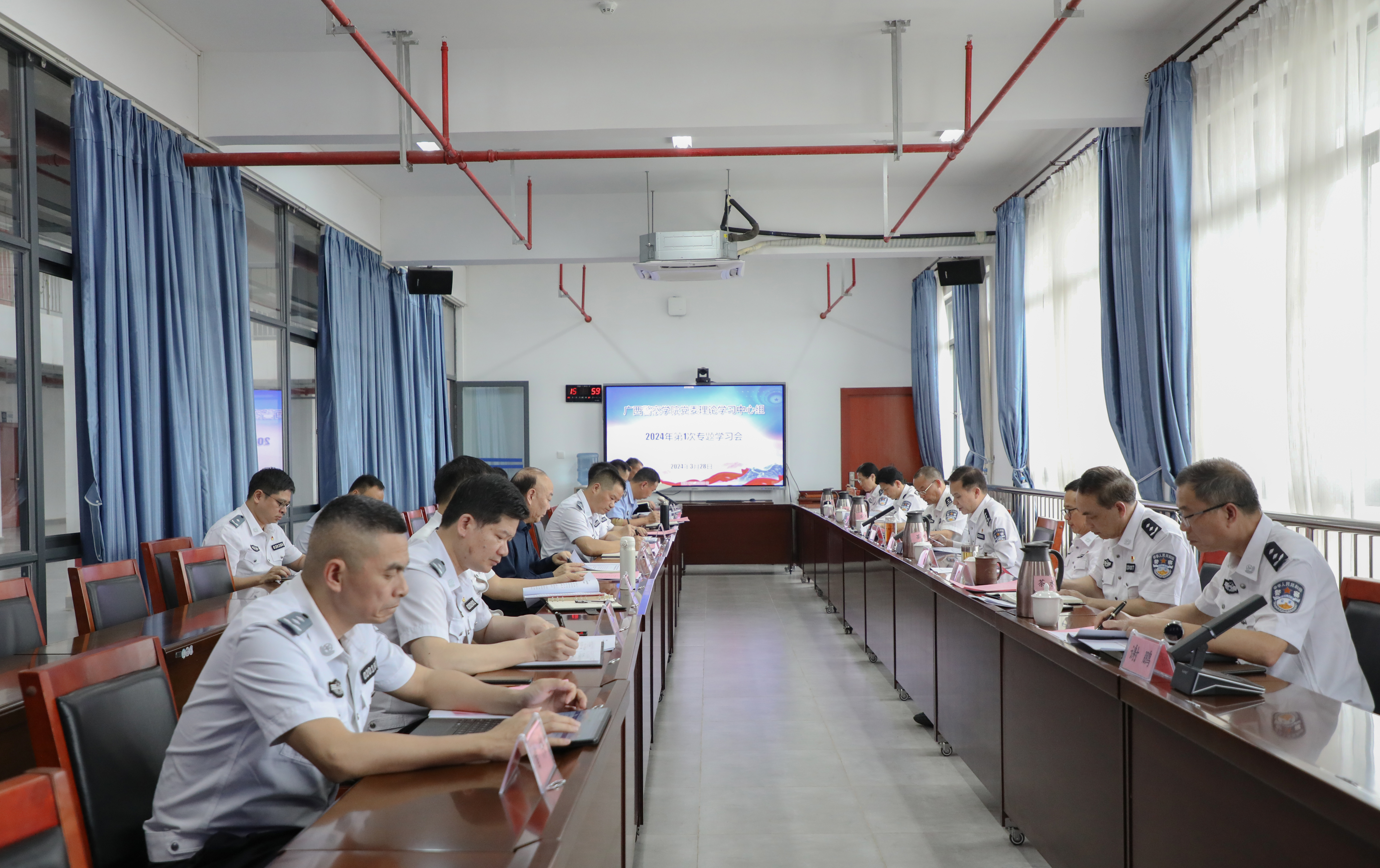覃干超在总结讲话中指出,要提高政治站位,认真学习、全面准确把握习近平总书记系列重要讲话精神的丰富内涵和重大意义,自觉把思想和行动统一到以中国式现代化全面推进强国建设、民族复兴伟业这一党和国家的中心任务、新时代最大的政治上来。要牢牢把握发展新质生产力对高等教育提出的新要求,深入贯彻落实习近平总书记对广西重大方略要求,着力推动人才培养质量不断提升,着力推动科学研究水平提高,扩大科研成果影响力,着力推动服务社会能力持续增强,推动学校高质量发展。要将学习成效转化为实际行动,以强烈的政治责任感和历史使命感,加强谋划部署,狠抓落地落实,大力推进学校全年各项工作,办好人民满意的公安教育,为平安广西、法治广西建设贡献警院力量。