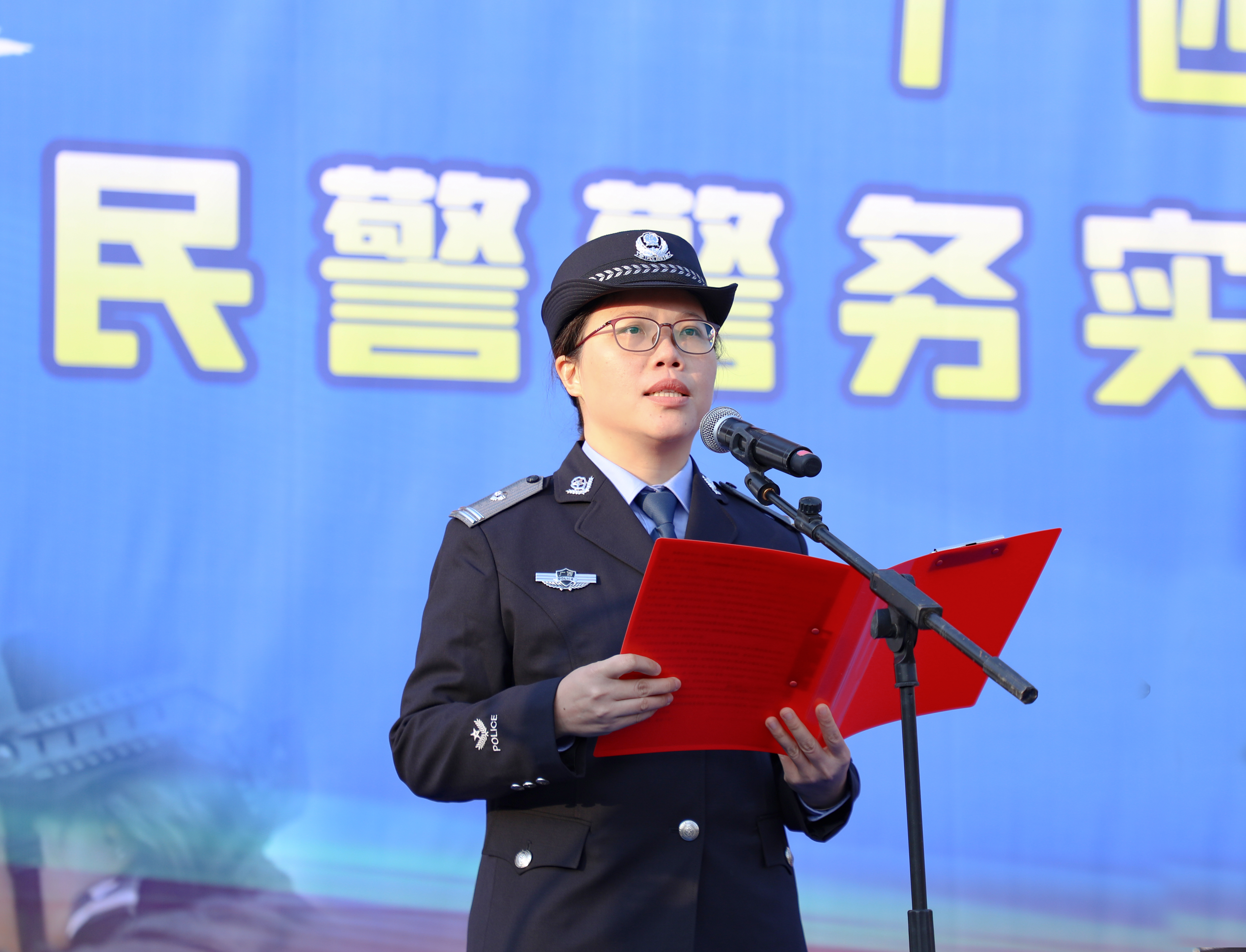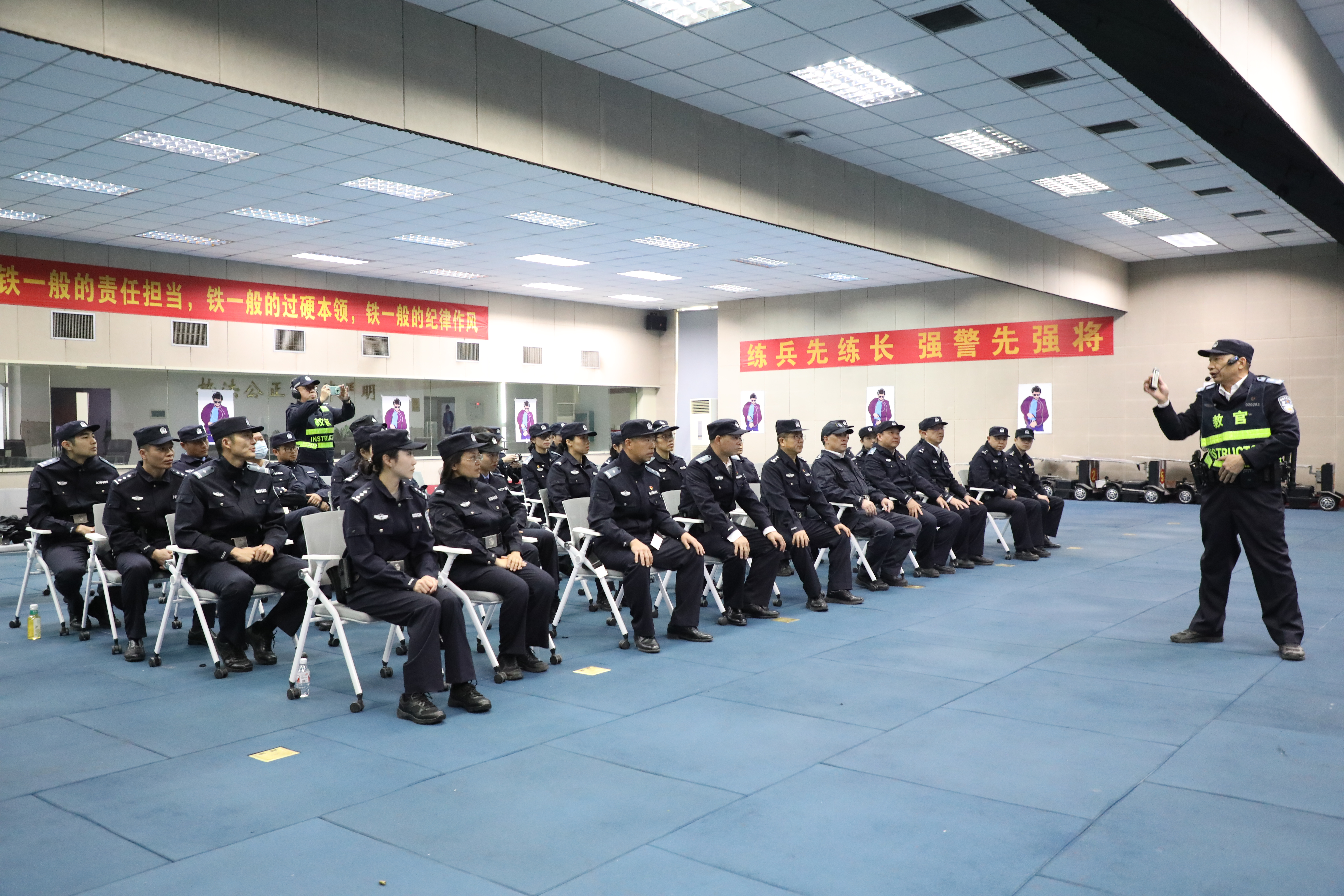 开训仪式上,参训民警教师代表李刚、蔡明丹,教官代表赵柳林先后作表态发言。