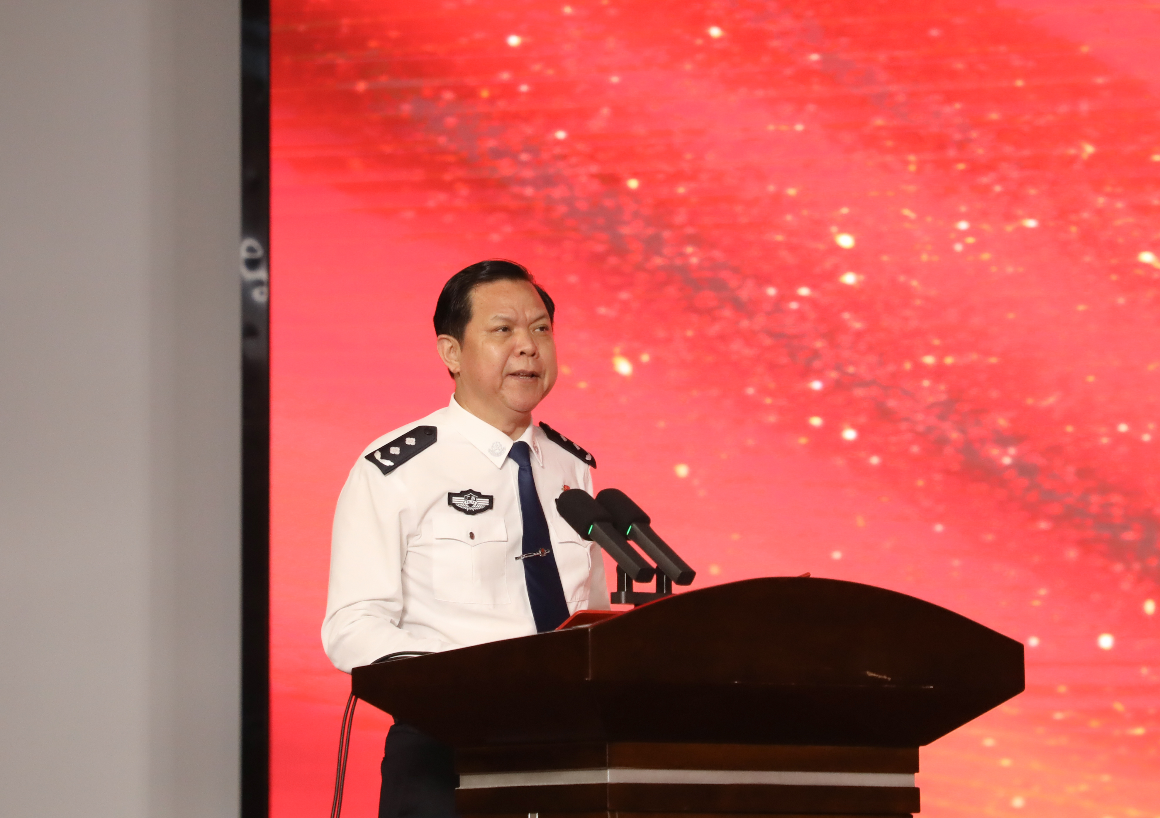 侦查学院丘三军副教授作为教师代表发言,他以“忠诚”“专业”“奉献”三个词鼓励同学们在新的征程上继续书写着属于自己的青春篇章。