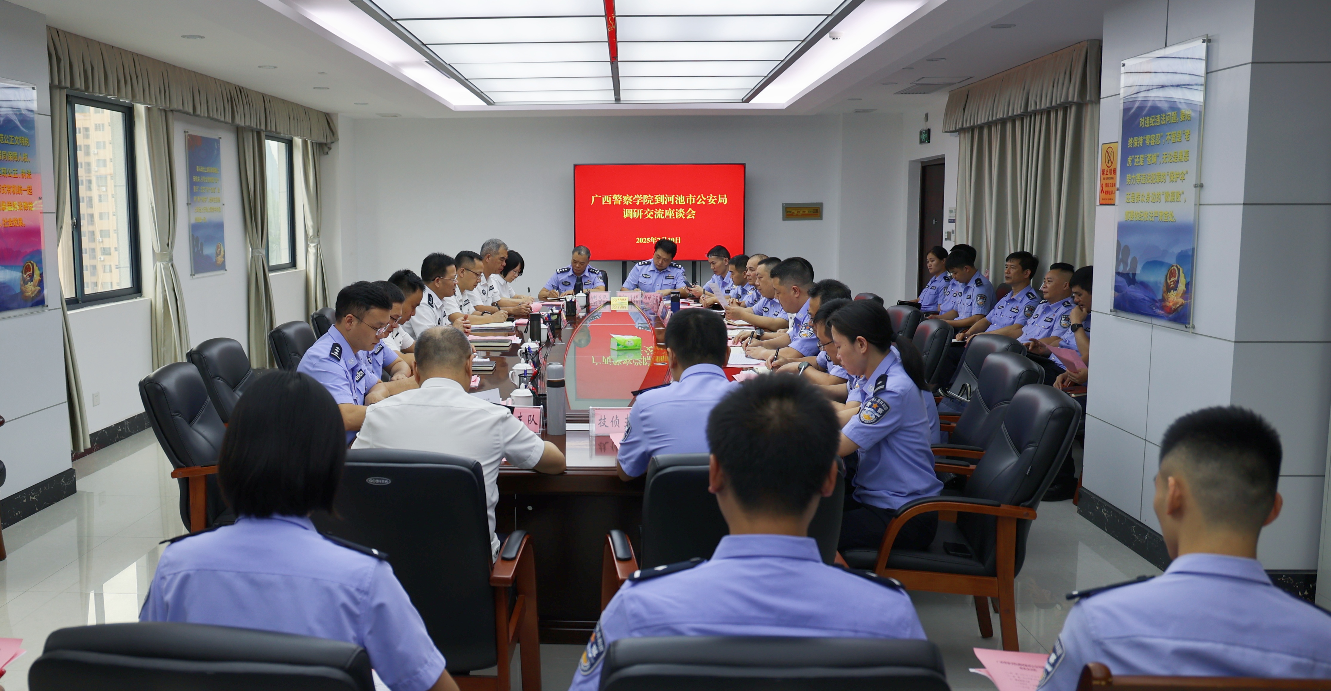 为深入了解学校近年来的毕业生就业情况,优化实战化人才培养模式,深化实战化教学改革,进一步推动校局合作,7月28日至30日,学校党委书记彭顺克率队先后赴来宾市公安局、柳州市公安局、河池市公安局开展调研交流。